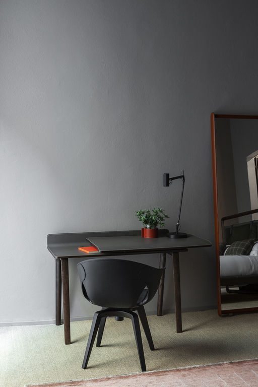 The swivel base of Poltrona Frau's Ginger armchair is equipped with a 'return' mechanism that allows the armchair to rotate 360° and return to its starting position. This makes the Ginger armchair extremely versatile and suitable for any environment, from the living room to the study area. In addition, the solid ash base with black painted steel hook support guarantees maximum stability and safety.